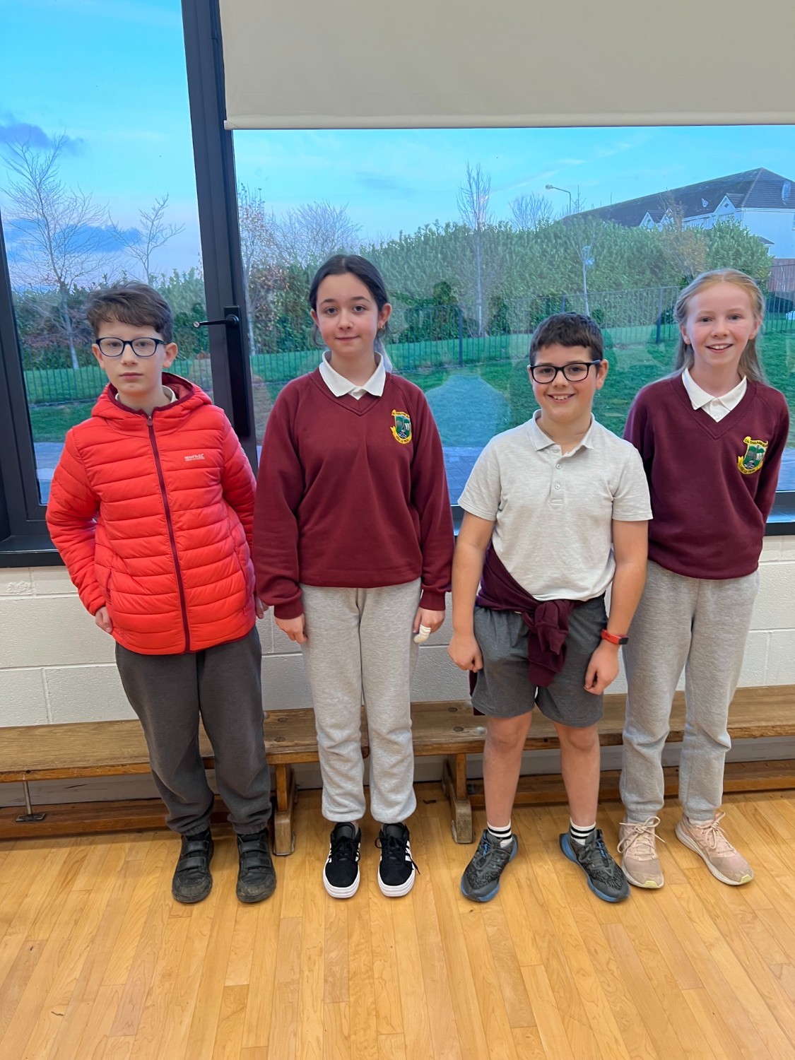 Finnbar, Killian, Padraig and Anna took top honours with a score of 68points, a six point lead on their nearest competitors. Oisin, Daire, Poppy and Robyn slotted in nicely to second place. Both teams head to the final in Knockbridge next Tuesday.